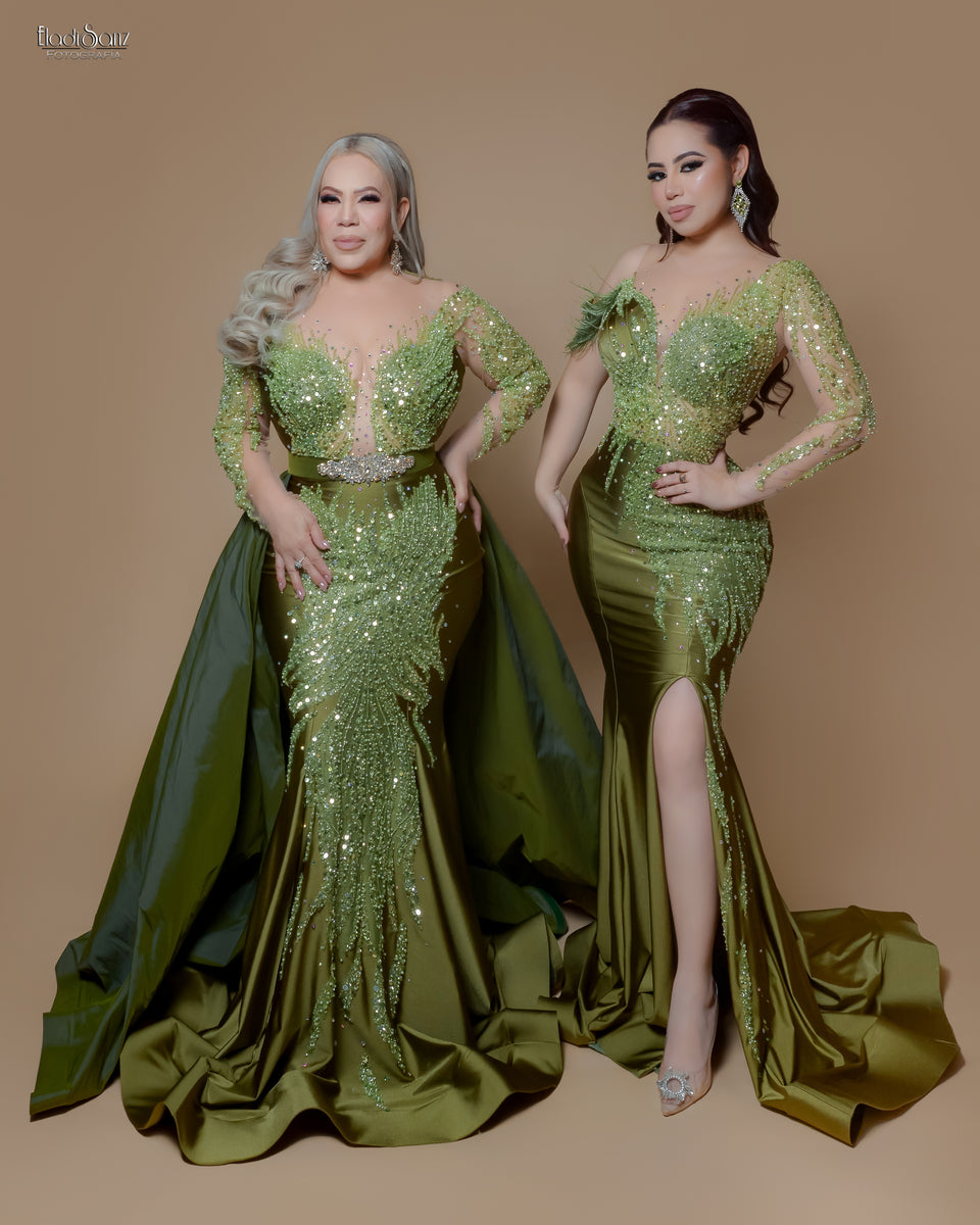 Our section of designs in fine rhinestones, are models made with embroidery in fine rhinestones of the best quality. These being the most exclusive collection of models that we handle. Since their details make them unique pieces.